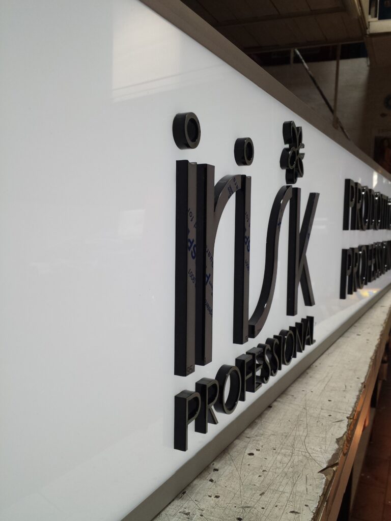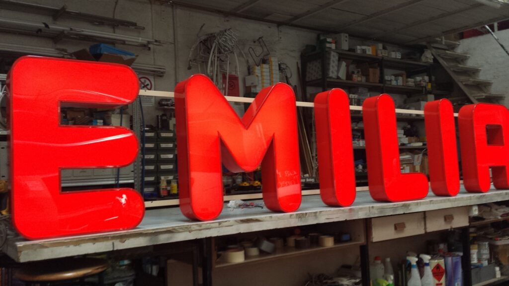 Le nostre insegne scatolate vengono verniciate dentro e fuori a seconda del materiale utilizzato e possono essere a luce diretta o indiretta. Per luce diretta si intende quando l’illuminazione delle lettere e’ sul frontale (davanti), mentre quelle a luce indiretta, sono chiuse davanti, quindi vengono fissate alla parete con degli spessori in modo che la luce esca da dietro creando un’ illuminazione particolare.